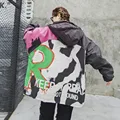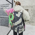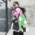 Slide 2021 Autumn Winter Fashion New Padded Coat Women Loose Large Size Letter Printing Big Pocket Hooded Parka LL101